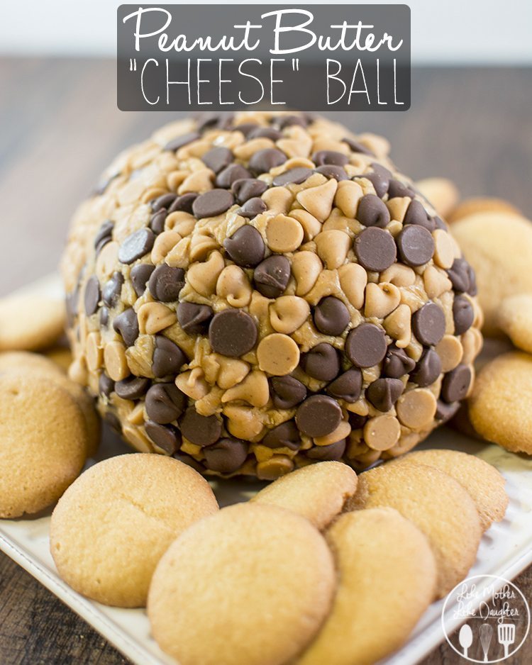 Serve with Vanilla Wafers and Broken Reeses cut in half on outside pressed in or other types with it. Great flavor as a cheesecake flavor torte or ball form.