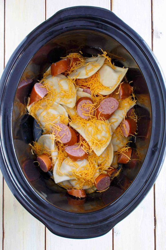 Slow Cooker Kielbasa & Pierogies