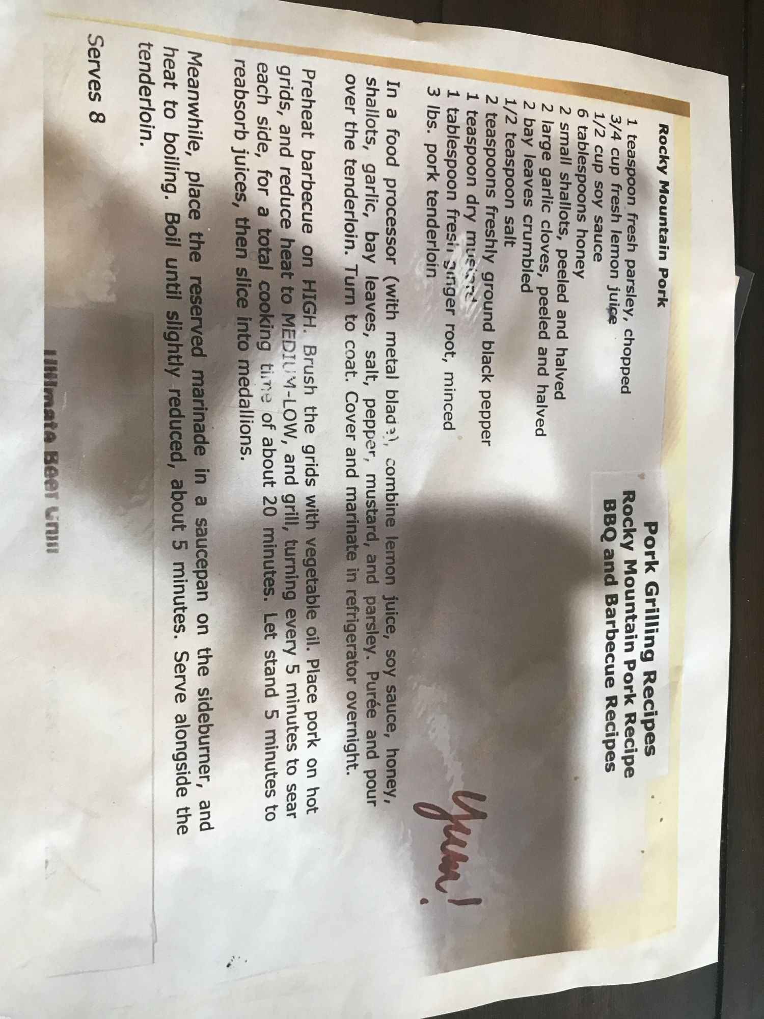 In a food processor, combine lemon juice, soy sauce, honey, shallots, garlic, bay leaves, salt, pepper, mustard and parsley. Purée and pour over the tenderloin. Cover and marinate in refrigerator overnight.