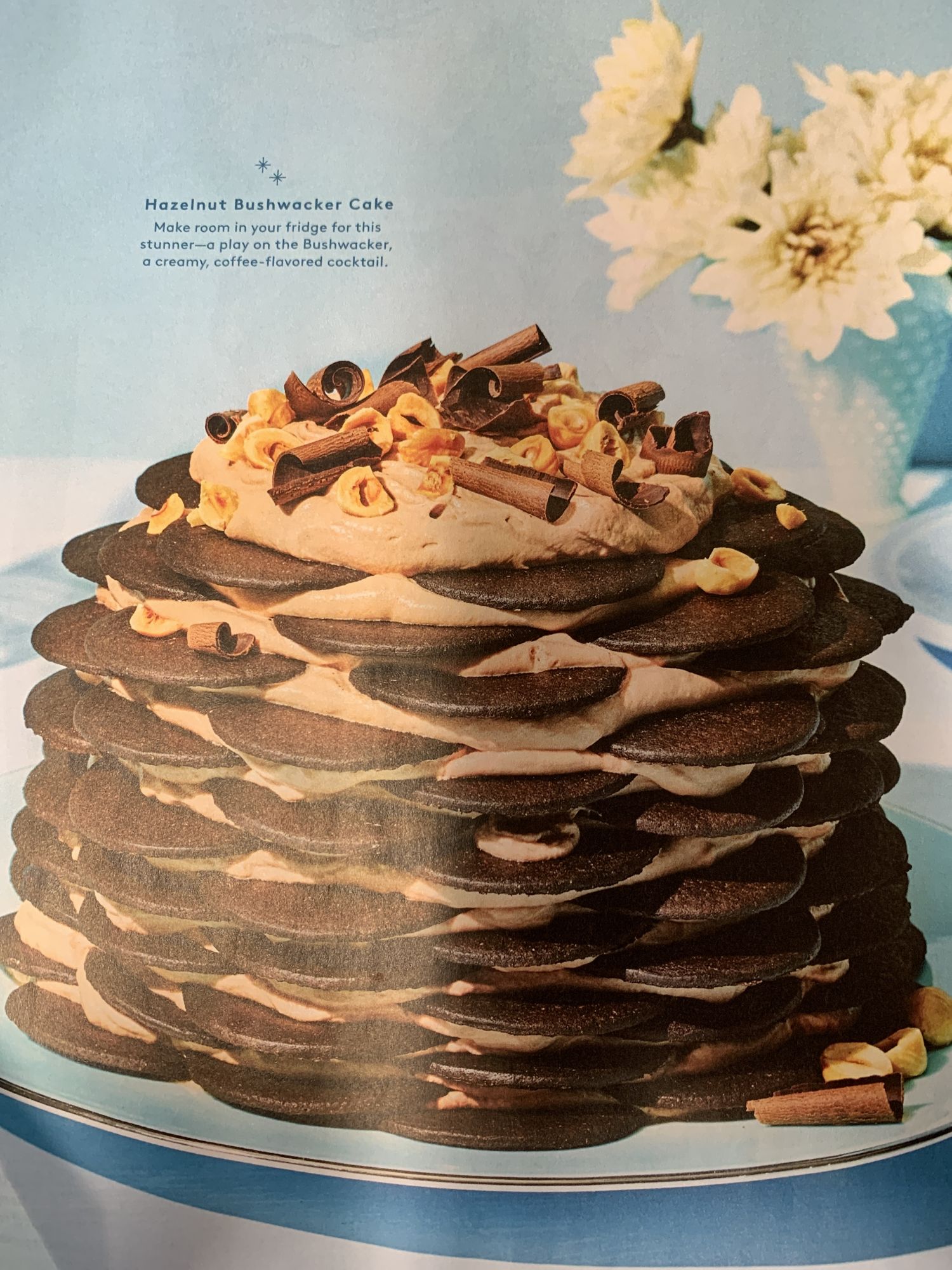 Top with another layer of cookies, staggering so they aren’t directly on top of one another. Repeat until there are 16 layers of cookies; top with remaining whipped cream mixture. Refrigerate, uncovered, for at least 5-8 hours. Top with chocolate shavings.