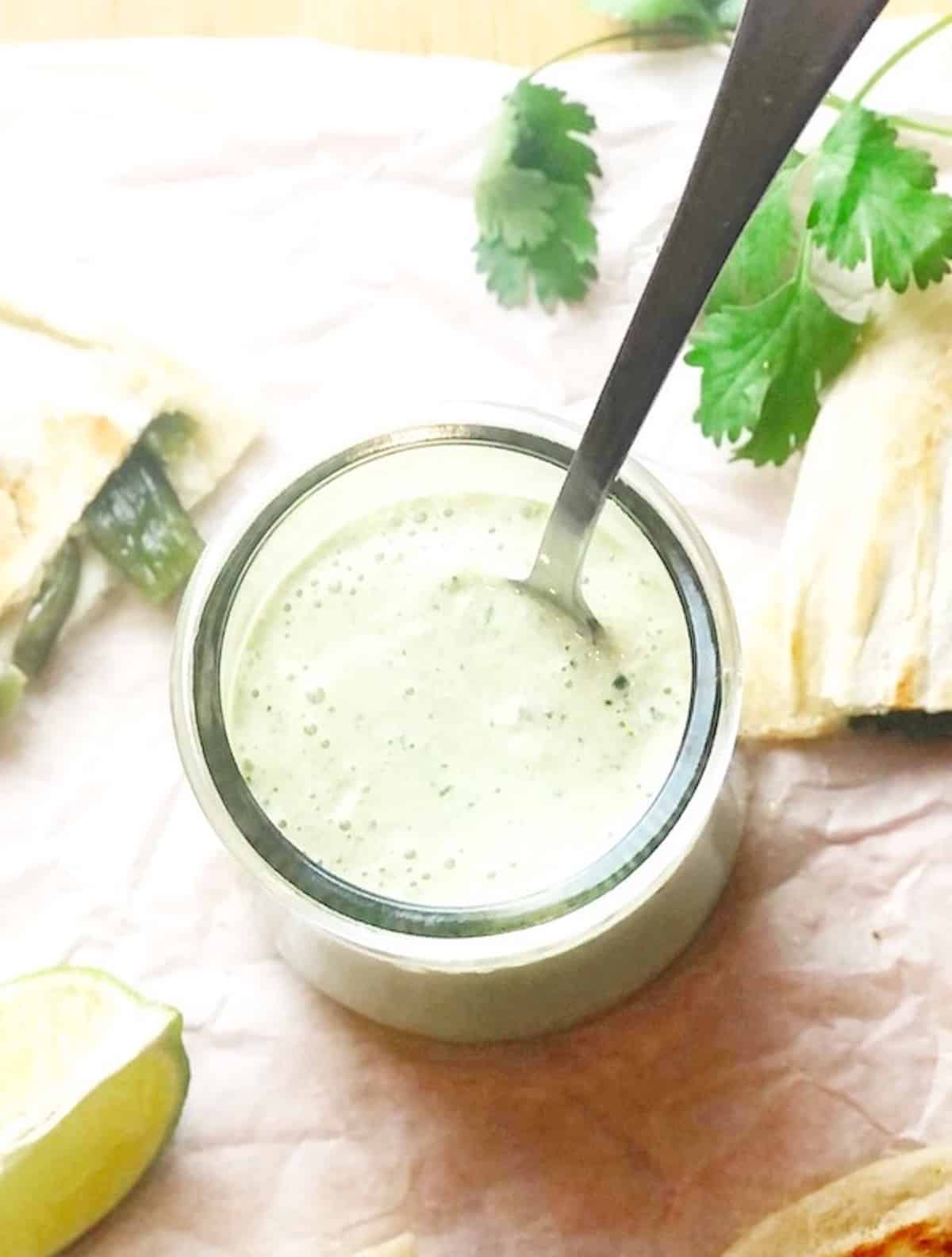 Creamy sweet sauce to put over Mexican food, chicken or use as a dipping sauce.