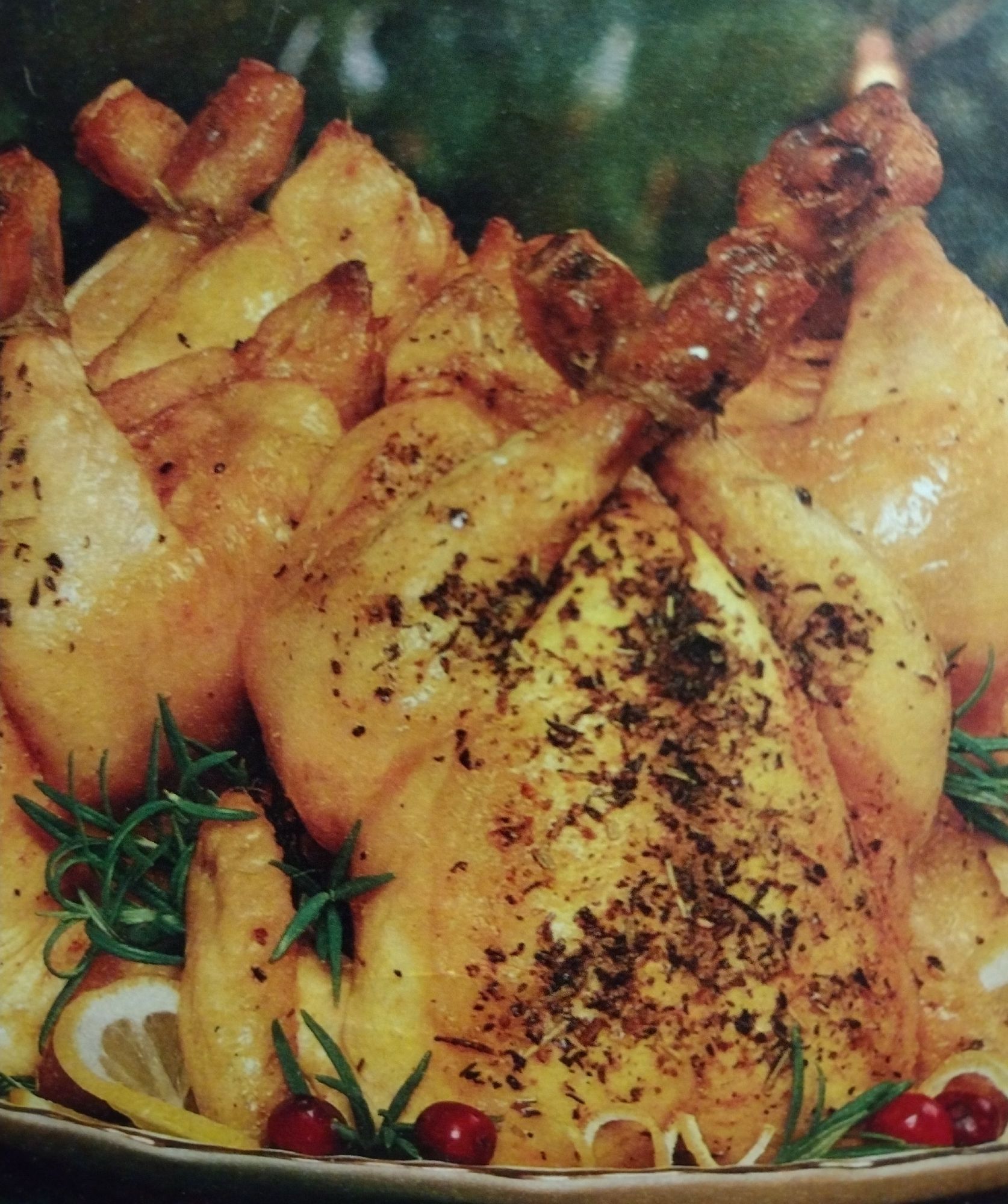 Heat oven to 400*. Set rack in large roasting pan. Brush hens with oil; sprinkle with herb roasting rub. If desired, truss with kitchen strong.