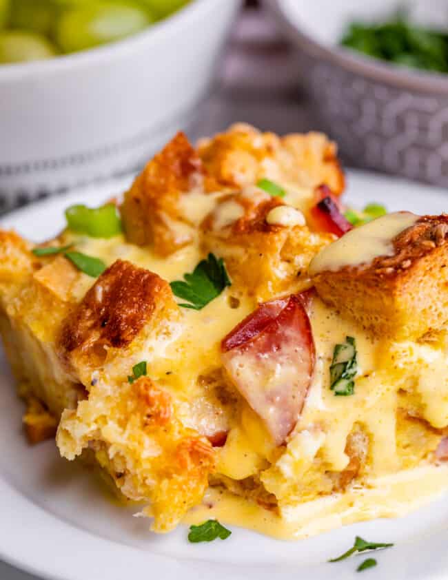 Serve the hollandaise sauce over the casserole. I prefer to drizzle the sauce over individual portions, but you can spoon it over the entire casserole if you prefer.