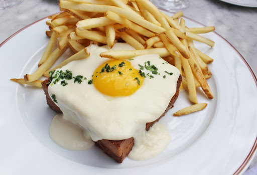 Preheat the broiler. Place 6 slices of bread on a baking sheet and spread 1 tablespoon of the mustard over each. Top with 2 slices ham and half of the remaining gruyere. Broil until the cheese begins to melt, about 1 1/2 minutes. Top with the remaining 6 bread slices, and then pour a generous amount of bechamel on top of each sandwich and sprinkle with the remaining gruyere and Parmesan. Broil until the cheese sauce is bubbling and evenly browned, 2 to 3 minutes.