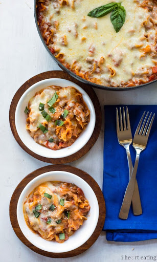 Let the lasagna sit for about 5 minutes for cheese to melt. If I already have the oven on, I just pop the pan in (make sure it’s oven safe first, though) and let the cheese melt. It takes about 3-4 minutes.