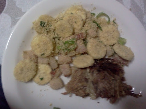 OBS: Eu prefiro bananas não tão maduras. A farinha pode ser tanto de milho como de mandioca. Geralmente prefiro com sabor de bacon.