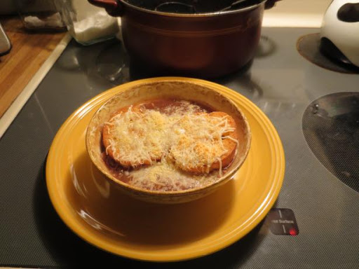 18. At this point you can add the 2-3 Tbs cognac and grate the 1/2 raw onion into the soup.