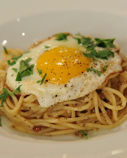 Fettuccine Carbonara with Fried Eggs