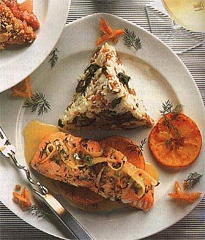 Meanwhile, mix orange juice, green onions, lemon juice and remaining 1 1/2 tablespoons dill in small bowl.
