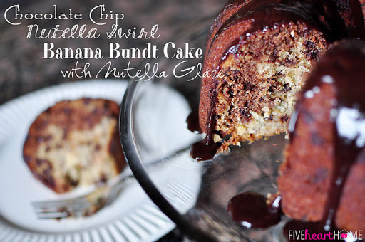 Chocolate Chip Nutella Swirl Banana Bundt Cake with Nutella Glaze