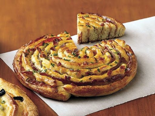 1) Heat oven to 375°F. Unroll dough; separate into 12 strips. Starting at center of ungreased cookie sheet, coil bacon slices with dough strips into a loose spiral, pinching ends together securely as strips are added.