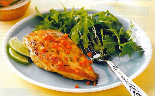 2. Preheat oven to 425F (220C). Remove chicken from fridge, discard used marinade and set chicken breasts in an oiled or parchment-paper-lined tray. Pour reserved marinade over chicken, season with salt and pepper and roast in the oven for 10 min.