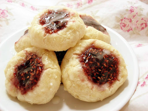 4. Make the sugar glaze: combine sugar and butter. Add corn syrup, stirring to combine. Drizzle in milk a little at a time until the glaze has a runny consistency. 4. Make a thumbprint in the center of each cookie. Fill each thumbprint with 1 tsp preserves. Bake until edges are golden, 12 to 15 minutes. Transfer pans to rack to cool. Let cookies cool on pans for 5 minutes.