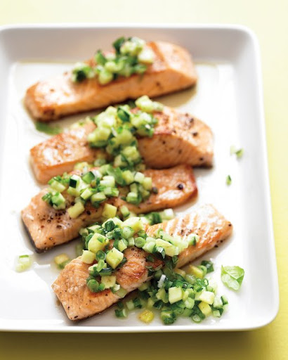 Salmon with Spicy Cucumber-Pineapple Salsa