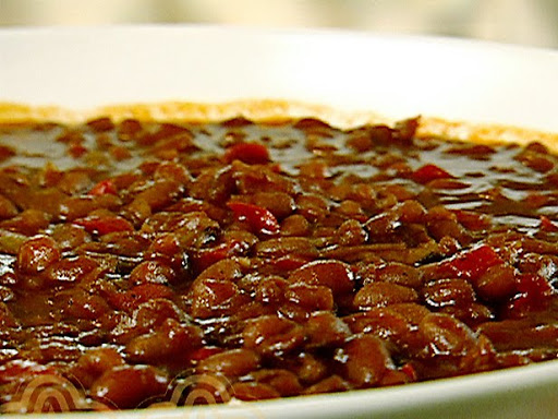 Use your choice of barbecue sauce and canned baked beans. Combine everything and simmer for 1 hour on stove top or bake uncovered at 350 degrees for 1 hour.