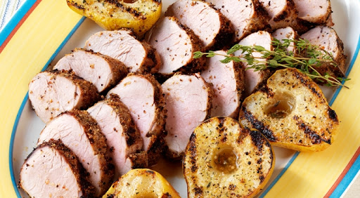 MUSTARD-CRUSTED PORK TENDERLOINS WITH GRILLED PEARS