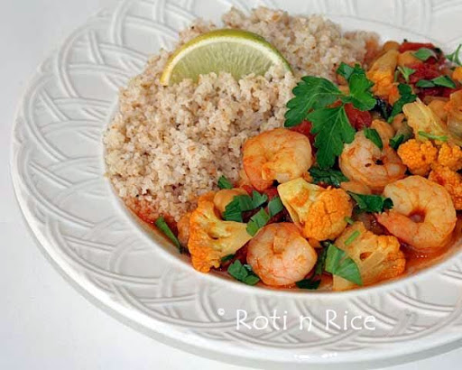 Serve immediately with roasted brown rice couscous and lime wedges.