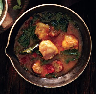 MIXED GREENS & SAUSAGE SOUP w/DUMPLINGS