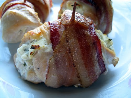 - 4 slices of bacon, prosciutto or shenkinspeck
