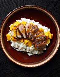 5. Divide the rice and squash among 6 plates. Thinly slice the duck crosswise and divide among the plates. Drizzle with the orange sauce and serve immediately.