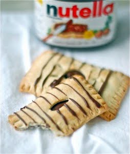 4. Drizzle the melted nutella over the warm pop tarts and serve up.