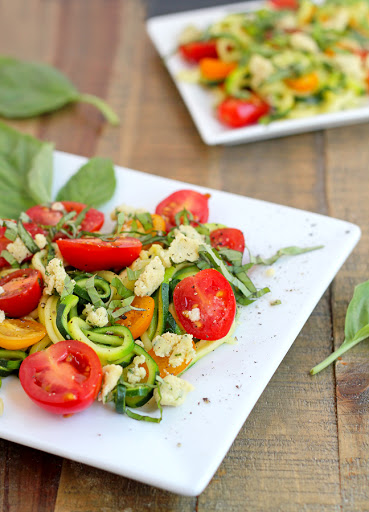 Toss zucchini with tomatoes and drizzle with olive oil.