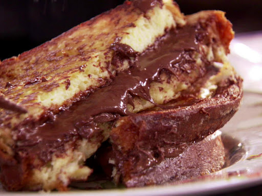 Spread 2 tablespoons of the chocolate hazelnut spread on 1 piece of the bread, and place the other piece of cooked bread on top to enclose the chocolate hazelnut spread.