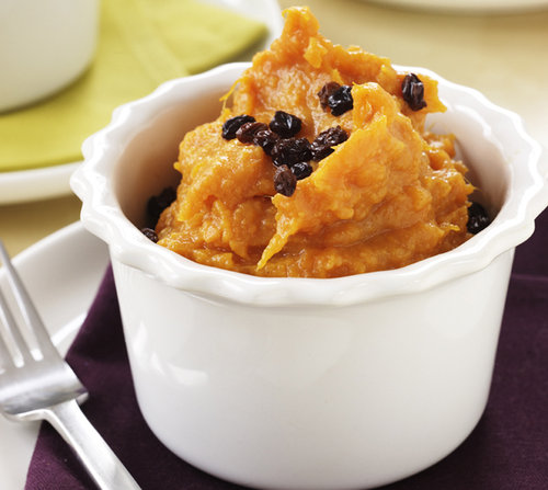 2. Add coconut milk, maple syrup, salt and spices, and mash with a potato masher until smooth. Adjust seasoning to taste. Add more coconut milk for a creamier texture and more maple syrup for a sweeter flavor. Mix in currants and serve.