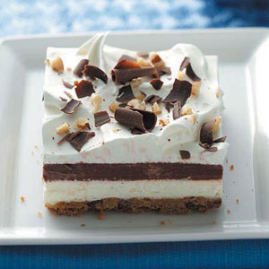 Press the cookie dough into a greased 13-in. x 9-in. baking pan. Bake at 350° for 18-20 minutes or until golden brown. Cool on a wire rack.