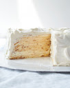 Crepe Expectations About 20 crepes sandwiched with lemon curd cream and thickly topped with mascarpone cream take the concept of layer cake to the next level.