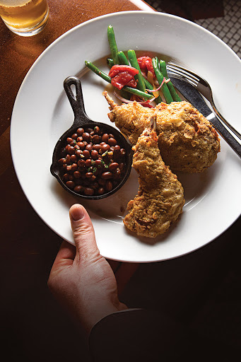 3. Pour enough oil into a 6-qt. Dutch oven to reach a depth of 2". Heat until a deep-fry thermometer reads 300°. Working in batches, dredge chicken in flour mixture, shaking off excess, dip in batter, and dredge again in flour. Fry, flipping once, until golden and almost cooked through, 7–8 minutes, or until an instant-read thermometer inserted into the thickest part of the thigh reads 150°. Transfer chicken to paper towels.