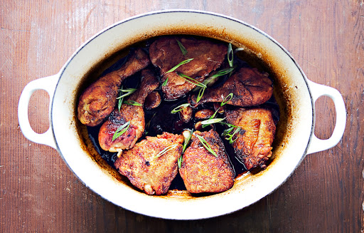 - 2 1/2 pounds skin-on, bone-in chicken legs and thighs