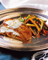 Reduce the heat to low and return the chicken to the pan along with tarragon (or dill). Turn to coat with the sauce and cook until heated through, 1 to 2 minutes. Slice the chicken and serve with the sauce, garnished with sprigs of tarragon (or dill), if desired.