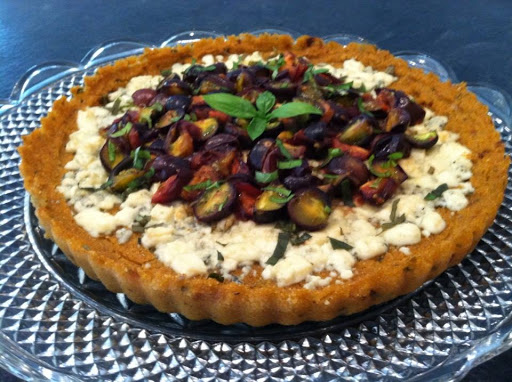 Polenta tart with Gorgonzola, roasted heirloom tomatoes and basil