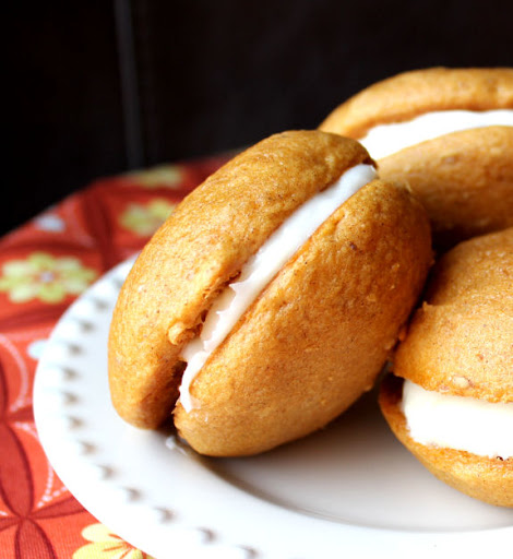 Pumpkin Woopie Pies with Cream Cheese Frosting