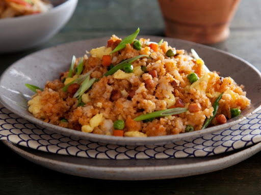 For the fried rice: Heat a wok over high heat and add 1 tablespoon peanut oil. Add the eggs and scramble, then set aside on a plate.