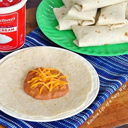 1. Mix the refried beans and salsa together in a medium bowl . (You can also add chopped chicken or ground beef if you like).