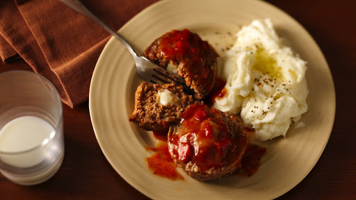 Meanwhile, heat remaining sauce until hot. Immediately remove loaves from muffin pan; spoon heated sauce over loaves. Serve with potatoes.