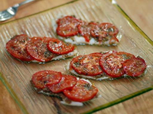 For the fish: Preheat the oven to 400 degrees F\200 degrees C. Pat the fish dry with paper towels. Place on a baking sheet and smear each with a spoonful of the tapenade. Put a few slices of tomato on top, drizzle with some olive oil and sprinkle with salt, pepper and herbes de provence. Bake until the fish is cooked, 6 to 8 minutes.