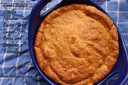 To make soufflé, in medium saucepan over medium heat, cook tapioca flour and coconut oil until lightly golden, whisking the entire time. Gradually whisk in coconut milk and remove from heat. Mix in sweet potato mash and egg yolks, mix until smooth. Stir in stevia, vanilla extract and nutmeg. Set aside.