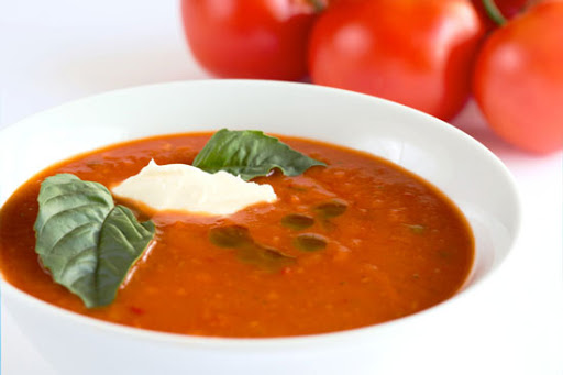 In a large saucepan,bring tomatoes and broth to a boil. reduce heat,Cover and simmer for 10 minutes.Add basil and sugar. Reduce heat to low.