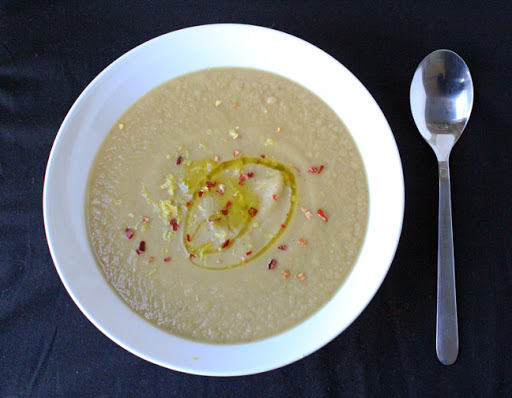 Serve hot and top with lemon zest, red chili pepper flakes, and olive oil before serving.
