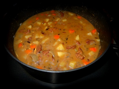 simmer for 1-1/4 hours. Stir in the potatoes, onion, carrots and