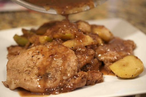 Return the pork chops to pan and cook on medium-low heat until the pork chops are cooked thoroughly.