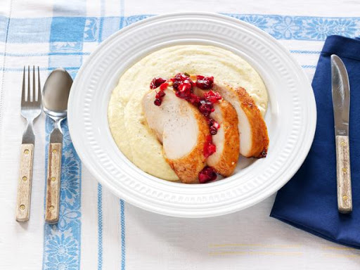 Sliced Chipotle Turkey Breast With Pomegranate Cranberry Relish and Polenta