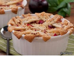 Cut pie crust into 7 (1/2-inch) strips. Place strips over plum mixture in a lattice pattern (see photo).
