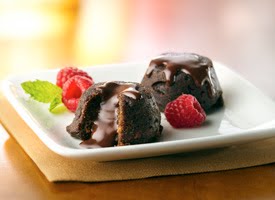 6. To serve, place 2 brownie cups on individual microwavable serving plate. Microwave uncovered on High for 10 to 20 seconds or until chocolate just beings to bubble and run over edge of brownie cup. Spoon 1/4 cup raspberries around brownie cups on each plate; serve immediately.