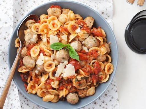 Mini Mozzarella Stuffed Turkey Zucchini Meatball Orrechiette