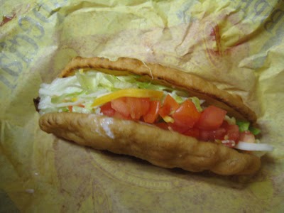 3. Remove from heat and keep warm. In a deep-fryer (or you can use a skillet) deep fry the bread for 30 seconds. Let drain on absorbent towels. Build Chalupas starting with meat, then sour cream, lettuce cheese, and tomatoes in that order. Top with hot sauce or salsa if desired.