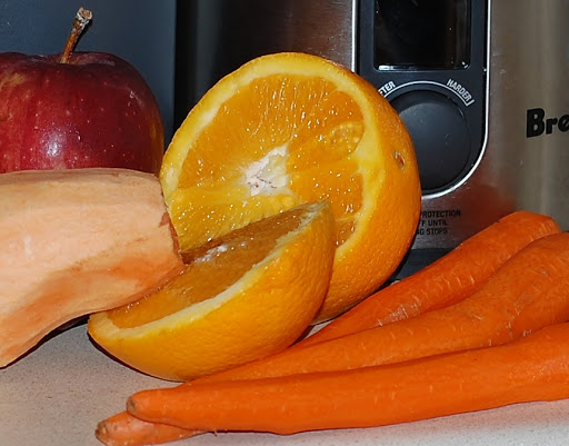 Always wash foods thoroughly prior to juicing. Cut off brown edges, etc. The sweet potato should be cut lengthwise into at least thirds prior to help release the juices.